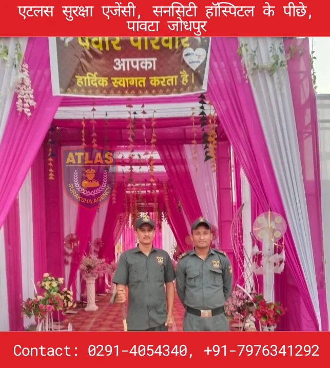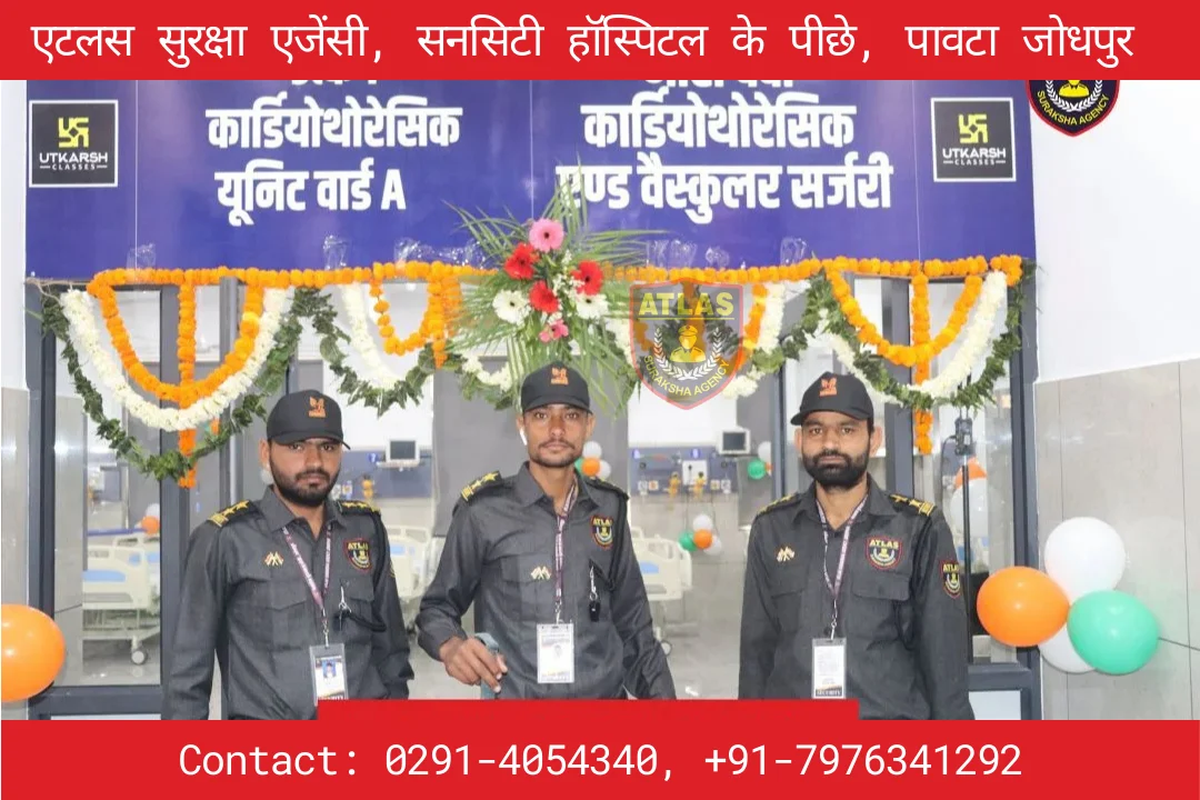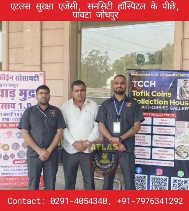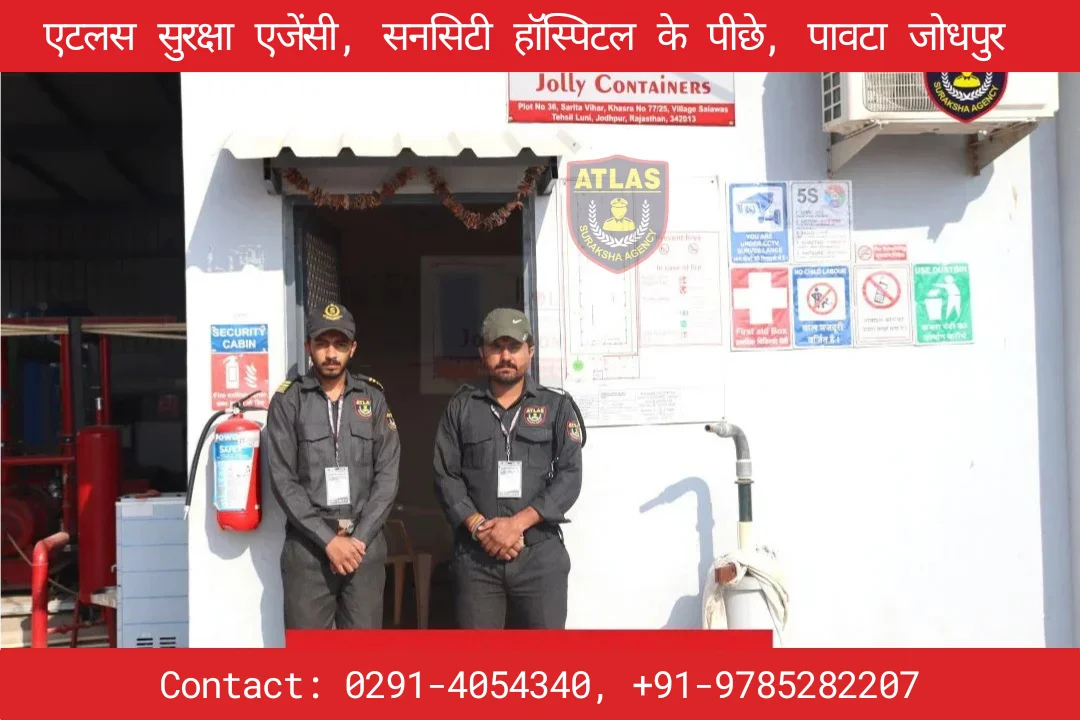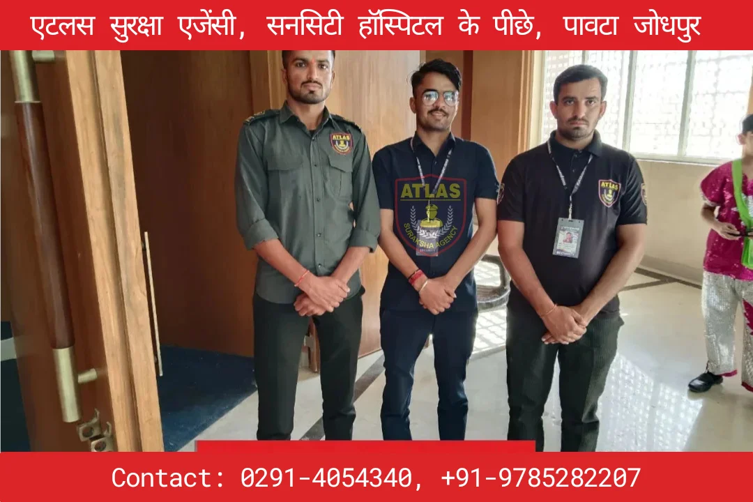 हमारी कंपनी जोधपुर और उसके आस पास के शहरों में सुरक्षा गार्ड सेवाएं प्रदान करती है। हम स्पष्ट करना चाहते हैं कि हमारी कंपनी का केवल एक ही मुख्य कार्यालय एटलस सुरक्षा एजेंसी, प्लाट नंबर 302, बेनीवाल टावर, 2nd फ्लोर, सनसिटी हॉस्पिटल के पीछे, मानजी का हत्था, पावटा, जोधपुर में स्थित है। भारत या विदेश में हमारा कोई अन्य शाखा या कार्यालय नहीं है।